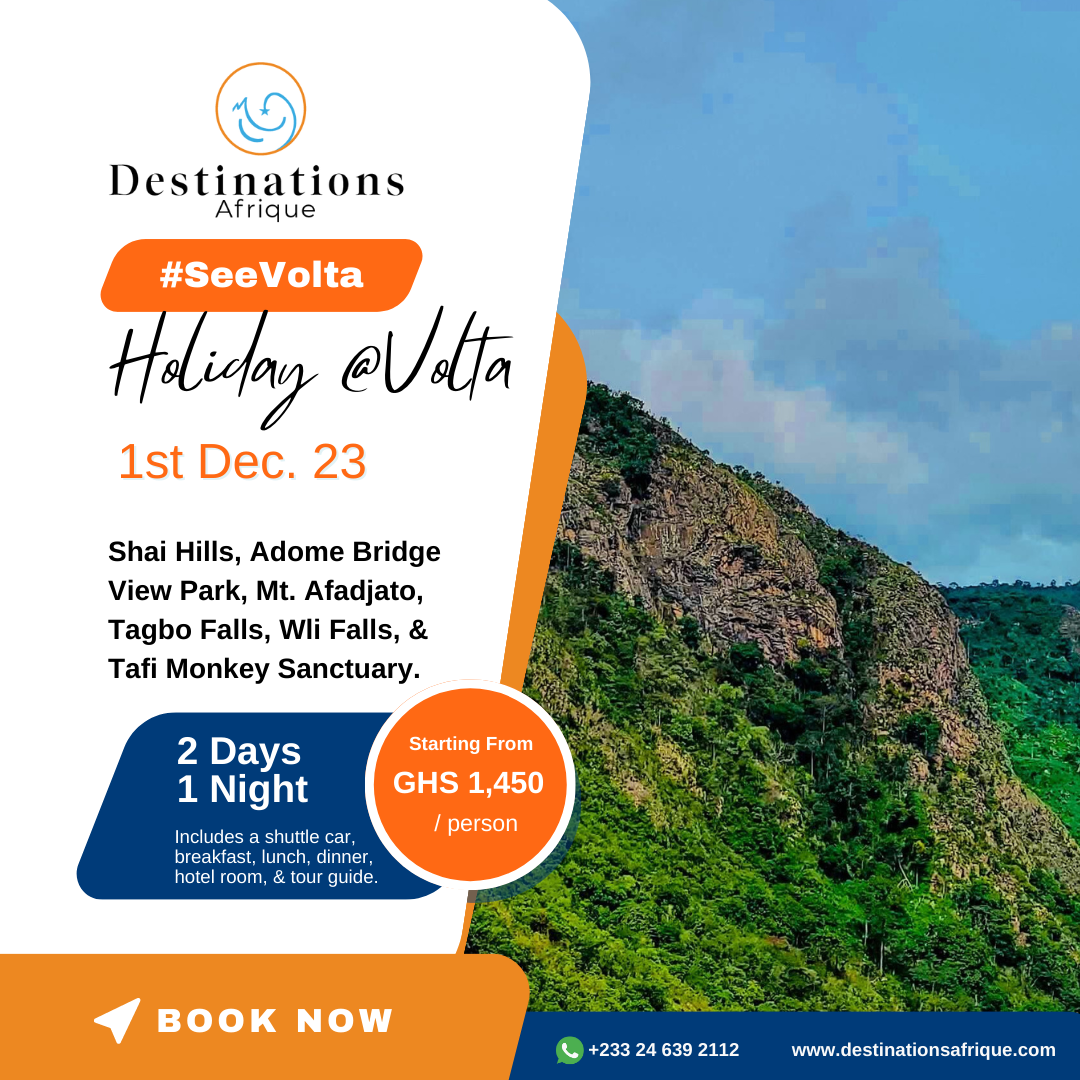 Come #SeeVolta with us this December. Climb to the peak of Afadjato, experience the Bridge View Park, Wli Waterfalls and Shai Hills.