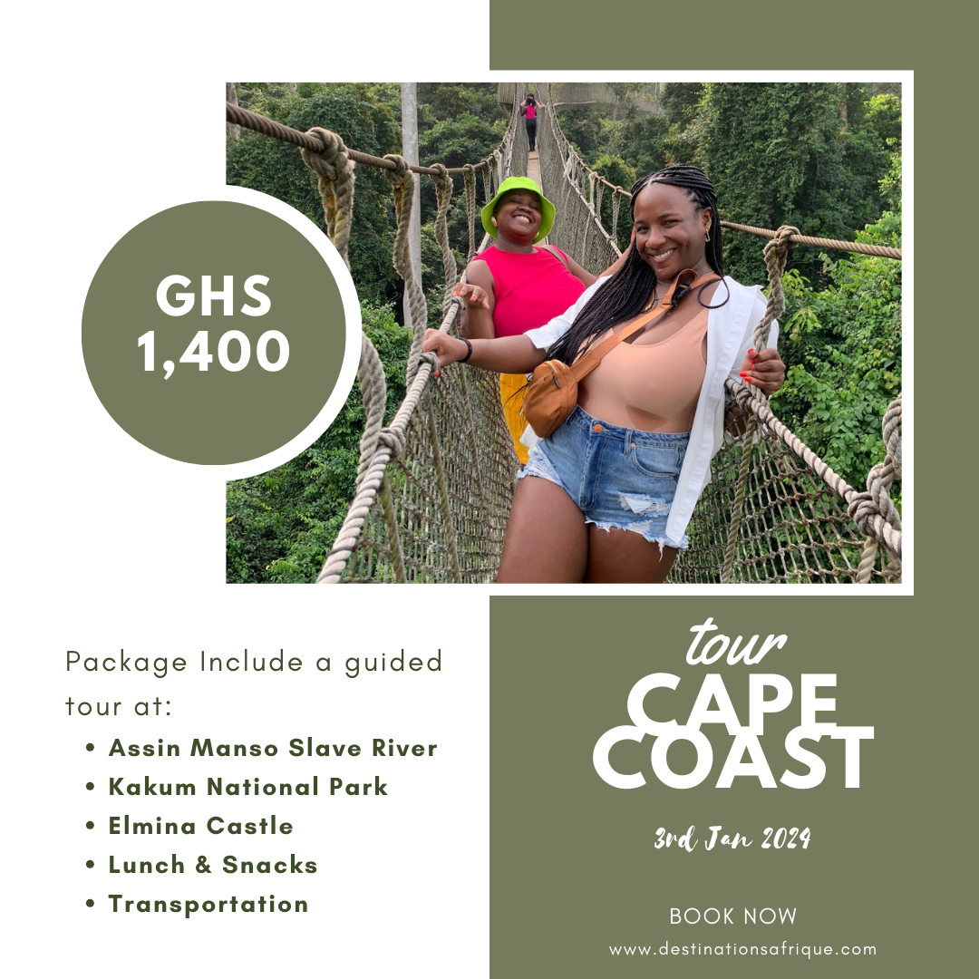 This fantastic tour will provide you with a cultural and immersive experience through the rich history of Cape Coast, a key post in the transatlantic trade slave. Visit places like Assin Manso Slave River, known to have been the largest slave market and Cape Coast Castle, a UNESCO World Heritage Site known for being the point of no return for Africans being sent to slavery. Finish the tour with a visit to Kakum National Park, one of West Africa’s surviving tropical rainforests.